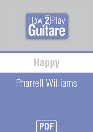 La partition complète pour guitare avec tablatures du joyeux et dansant Happy de Pharrell Williams. Une partition "commentée" mais aussi découpée par parties pour vous aider à appréhender le morceau plus facilement.