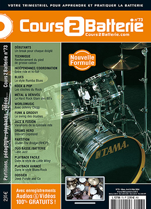 DEBUTANTS : Un break pour chaque doigté. TECHNIQUE : Renforcement du pied de grosse caisse. INDEPENDANCE & COORDINATION : Entre ride et hi-hat. BLUES : Le style Rumba Blues. ROCK & POP : Les cloches du Rock. METAL & DERIVES : Le Hard Rock Glam des 80’s. WORLDMUSIC : Avec Johnny Clegg. FUNK & GROOVY : Le swing des doubles. JAZZ & FUSION : Variations de la cymbale ride. DRUMS HERO : Stewart Copeland. PARTITION : Under The Bridge (RHCP). DUO BASSE/BATTERIE : Latin Jazz. PLAYBACK FACILE : Dans le style de Little Wing. PLAYBACK AVANCE : Dans le style Blues/Rock. DOSSIER : Deep Purple and Co.