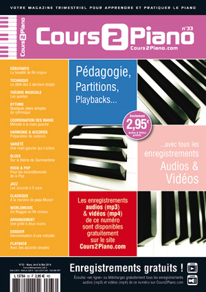 DEBUTANTS : La tonalité de Ré majeur. TECHNIQUE : Le délié des 3 derniers doigts. THEORIE : Les quintes. RYTHME : Quelques plans simples de rythmique. COORDINATION DES MAINS : Mélodie à la main gauche. HARMONIE & ACCORDS : Préparation de cadence. VARIETE : Une main gauche qui s’active. BLUES : Sur le thème de Summertime. POP & ROCK : Pour les inconditionnels de la Pop. JAZZ : Les accords à 5 sons. CLASSIQUE : A la manière de papa Mozart. WORLD MUSIC : Un Reggae en Ré mineur. ARRANGEMENT & PROGRAMMATION : Une grille à deux mains. DOSSIER : Harmonisation d'une mélodie. PLAYBACK : Avec des accords simples.