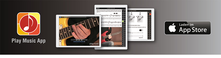 iPad-Versionen gibt es für alle Gitarren-Lehrbücher mit Tabulaturen, die im Play-Music-Verlagskatalog erscheinen: Einführungen, Spieltechniken, Musikstile, wie Rock, Blues, oder Jazz. Klicken Sie in nebenstehendem Menü einfach die Themen an, die Sie interessieren.