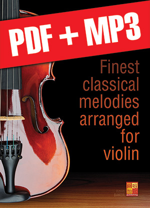With its extensive and diverse repertoire, this tutorial allows you as a violinist to access the best of what classical music has to offer. If you choose to work with this tutorial, you will not only broaden your musical horizon and improve your playing technique, but indeed enjoy performing all kinds of masterpieces on your own violin. All the great composers are featured – with one or even several of their works, with concerts, symphonies and sonatas, with lieder, arias and overtures, with Renaissance dances, orchestral pieces, waltzes and ballets, but also with instrumentals such as preludes, nocturnes, etudes, marches, gymnopedies and much more. And in order not to lose your enthusiasm while practicing, each score is accompanied by 2 audio-recordings. In the first recording, the violin-part is played along to the corresponding accompaniment. In the second, only the backing track (the accompaniment) can be heard, which gives you the possibility of taking up the score yourself. In total, you are invited to enjoy 174 recordings, which add up to more than 6 hours of musical practice(!)