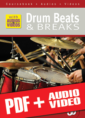 This method presents a large number of drum beats along with as many corresponding breaks. They all come from the repertoire of the greatest drummers from the present and the past. In other words, reference grooves! This method is of course primarily intended for the drummers, who will find an endless source of exciting rhythms to incorporate into their own playing. Other musicians will find here a worthwhile support in programming their drum machines or sequencers. The many rhythms presented here are grouped and sorted by style: Rock & Metal, Blues & Shuffle, Jazz, and Latin (Samba, Bossa Nova, etc...). Lastly, the videos demonstrate all the beats and breaks featured in this method, while the audio-recordings will allow you to put them into practice with various play-along tracks.