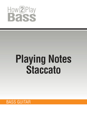 Staccato is the shortening of the duration of a note. It is indicated by a small dot placed either above or beneath the note and is obtained by damping the note with the left hand finger, by lessening pressure on the string shortly after having played it. Playing notes sharply and separated makes basslines sound dynamic and cadenced. This course provides a video demonstration example and a technical exercise with its corresponding recording, as well as nine grooves and basslines you can play along to backing tracks.