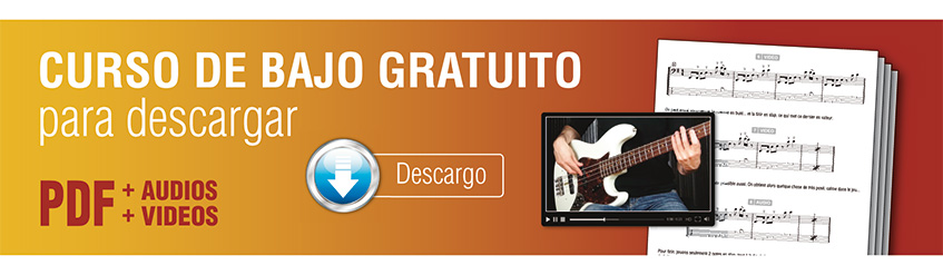 Este nuevo curso de bajo se compone de un documento PDF de varias páginas con muchas partituras (con tablaturas) y explicaciones pedagógicas así como todas las grabaciones audios MP3 y vídeos MP4 correspondientes.