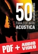 Nuestro método recoge 50 acompañamientos para la guitarra acústica. 50 acompañamientos de todos los niveles, inspirados por los mayores guitarristas y songwriters de todos los tiempos (Tim Buckley, Tracy Chapman, Nick Drake, The Eagles, Bob Dylan, Neil Young, Ben Harper, Jason Mraz...). Estas 50 rítmicas le brindarán la oportunidad de divertirse tocando, pero también le permitirán aprender “siguiendo el ejemplo” de las diferentes técnicas de acompañamiento en la guitarra acústica (toque en acordes o en arpegios, cuerdas al aire de transición, fórmulas rítmicas más corrientes, sonoridad de las cejillas, uso de la cejilla, open tunings...). Las grabaciones vídeos le permiten visualizar los 50 acompañamientos a velocidad real y más lenta, brindándole la posibilidad de adquirir los buenos ademanes, elegir las digitaciones adecuadas y tocar a compás. La grabaciones audios abarcan tantos playbacks como acompañamientos. Sea 50 playbacks tocados en dos aires diferentes: el aire recomendado (velocidad real) y el aire de estudio (lento). En el playback de velocidad real, la guitarra toca en el primer turnaround y luego desaparece para dejarle el protagonismo. Y por último, dichos playbacks son voluntariamente de larga duración (3 o 4 minutos cada uno, o sea más de 6 horas de música en total) para que se tome el tiempo de trabajar en las mejores condiciones posibles.