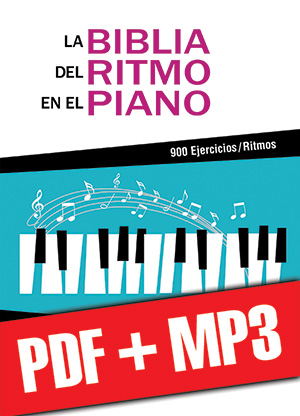 He aquí la Biblia del Ritmo en el Piano… el mayor método que todo aprendiz pianista un poco formal debe poseer. Porque el ritmo no se puede disociar de la música, y por tanto de la práctica del piano, bajo todas las formas (acompañamiento, melodía, solo…). En el menú 900 ejercicios... plenamente musicales. Unas auténticas pequeñas melodías, unos acompañamientos o unos gimmicks que le encantarán trabajar diariamente y que harán de Vd un experto del ritmo. Práctico, ante todo, dicho método va directamente a lo esencial. Sin palabras inútiles, pero con un trabajo minucioso de todas las figuras y todos los combinados posibles, que le otorgarán la capacidad de tocar cualquier ritmo en cualquier contexto, descifrar e interpretar cualquier partitura... en resumidas cuentas, de ser un verdadero músico. Las grabaciones incluidas en el método constan de 900 archivos audios (formato mp3) para el mismo número de ejercicios. Lo que permitirá a todos, y por tanto, también a los malos lectores, entender bien lo que hay que tocar, así como el objetivo que se debe alcanzar, o también lo que hay que corregir. A esos 900 ejercicios hemos añadido unos playbacks tanto binarios como ternarios y disponibles en varios aires para que uno pueda tocar a su ritmo en un soporte plenamente musical.