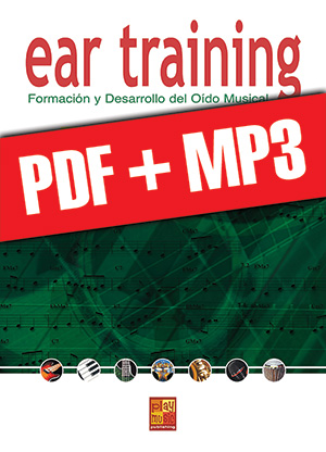 El método "Ear training - Piano" en versión para descargar (PDF y MP3). Método de formación auditiva cuyo objetivo es ayudarle a conseguir un sólido oído musical. Un oído capaz de identificar y "sacar" cualquier nota, cualquier frase, acorde, ritmo o solo, sin problemas. Le presentamos todos los elementos que le permitirán lograr este objetivo: estudio de los intervalos (desde la tercera hasta la treceava bemol), identificación de los acordes (desde el acorde mayor hasta el acorde M7 11#), estudio de los acordes y melodías conjuntamente, estudio del ritmo (desde la blanca hasta el tresillo de corcheas) y concluiremos con unos dictados melódicos (verdadera síntesis de los elementos anteriores). En los archivos mp3 están grabados los ejercicios. El libro le servirá para apuntar sus respuestas y comprobar sus resultados.