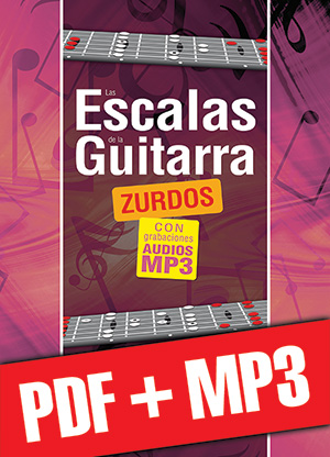 Este método se dirige a todos los zurdos que desean abordar las escalas de la guitarra con facilidad, rápidamente y cómodamente. Sea para aprenderlas y trabajarlas formalmente, sea solamente para referirse a ellas sin intentar asimilarlas de verdad. Todos encontrarán lo que buscan, puesto que en este libro nos enfocamos en el aspecto visual y muy gráfico de las escalas. Así que, no se hablará inútilmente, pero eso sí ¡habrá esquemas a montones! Y no se trata de cualquier esquema: son esquemas presentados exactamente como aparecen en el mástil de la guitarra para zurdos cuando uno la toca, respetando la perspectiva y el ángulo de visión, la anchura de los trastes, el diámetro de las cuerdas, las señales en el mástil, la posición de los dedos, etc… sencillamente para que uno aprenda en las mejores condiciones posibles. Son las 5 escalas que uno tiene que aprenderse imperativamente: la escala mayor, la escala menor (natural), las escalas pentatónicas mayor y menor así como la escala blues. Encontrará entonces en nuestras páginas, y eso, de la manera más visual posible, todos los esquemas de las escalas esenciales, en todo el mástil (de las cuerdas al aire hasta el traste 22), en todas las tonalidades (hay 12 en cada escala), y con las notas cercanas de los esquemas vecinos… ¡nada más que eso! Las grabaciones audios incluidas en el método abarcan un montón de playbacks que permiten trabajar, entrenar o divertirse con la guitarra con cada una de las 60 escalas presentadas (5 escalas en 12 tonalidades), y eso, en los principales estilos musicales que son el blues, el rock y el jazz… ¡son 14 horas de música grabada a su disposición!