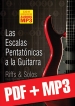 Las escalas pentatónicas son, para la guitarra, lo que el abecedario es para los idiomas: una base imprescindible, un paso obligatorio, y es por eso por lo que nuestro método constituye un pasaporte para las seis cuerdas. En el programa de este método: la escala pentatónica menor (imprescindible), la escala pentatónica mayor (esencial), otras escalas de 5 notas (más anecdóticas), que llamaremos pentatónicas híbridas. Pero no vaya a imaginarse que tratándose de escalas, resulte aburrido nuestro libro… Claro que trataremos en él de teoría y de técnica, por su bien, pero podrá practicar también, con numerosos ejemplos musicales de riffs y solos. Las grabaciones le permitirán escuchar todos los ejemplos técnicos y musicales (riffs y solos) y le ayudarán a aclarar las dificultades de interpretación. Le brindarán la posibilidad de tocar en los numerosos playbacks propuestos al estudio, en diferentes tonalidades y en diferentes velocidades en las secuencias de acordes de algunos grandes éxitos de la guitarra, o libremente, siguiendo las instrucciones. O sea ¡7 horas de música en total!