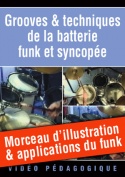 Des vidéos à télécharger pour tout savoir de la batterie funk et autres rythmes syncopés. Syncopes à la caisse claire et à la grosse caisse, patterns de charleston, ouverture de la charleston, notes fantômes, cut time, grooves funky typiques... Chaque vidéo, ou presque, est accompagnée d'un livret de partitions en PDF.