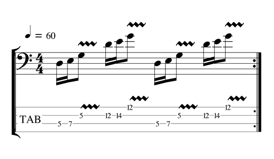 Dans la deuxième partie de la deuxième mesure, on reprend ce principe du jeu en doubles notes, combiné cette fois avec l'effet de glissé.