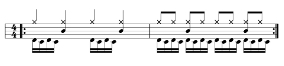 Ainsi, on dit qu'on joue les croches "en l'air" car on joue sur le "et" de chaque temps. En anglais, on parle de l'after beat, littéralement "après le temps". Profitez des annotations de comptage (au-dessus de la partition) et de métronome (en dessous de la partition) pour bien vous repérer rythmiquement.