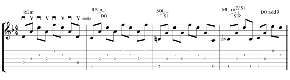 Voici donc la première version mythique, proposée ici en Mi, mais que l'on retrouve aussi assez fréquemment jouée en Sol.