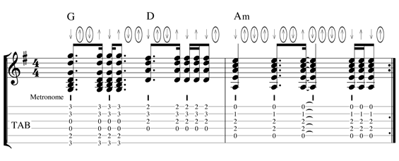 Ainsi, et à titre d'exemples, l'accord barré majeur de type 1 joué avec le barré (donc aussi l'index) en case 3 donnera un G (Sol majeur), alors que l'accord barré majeur de type 2 avec le barré en case 5 donnera un D (Ré majeur).