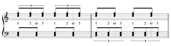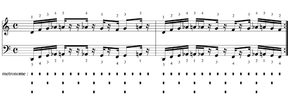 La main gauche, pour sa part, joue ici uniquement la basse sur le premier temps de chaque mesure.