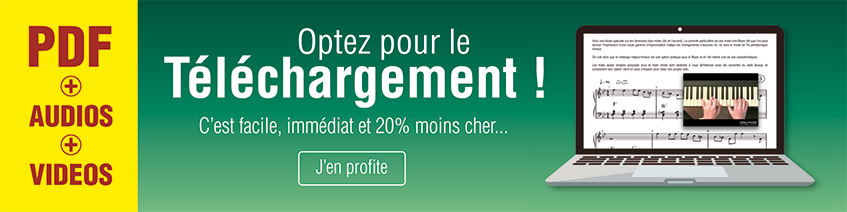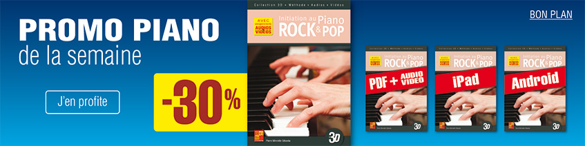 Que vous soyez débutant ou pianiste confirmé, aimant le jazz, le blues, le rock, le classique ou la world music, profitez ici d'un très large choix d'ouvrages pédagogiques pour apprendre à jouer du piano (ou synthétiseur, orgue…) : méthodes avec CD et DVD ou enregistrements à télécharger, DVD didactiques, supports playbacks, cours à télécharger, leçons multimédia, méthodes en téléchargement pour ordinateur (PDF) ou tablette (iPad ou Android), vidéos, partitions pour piano…