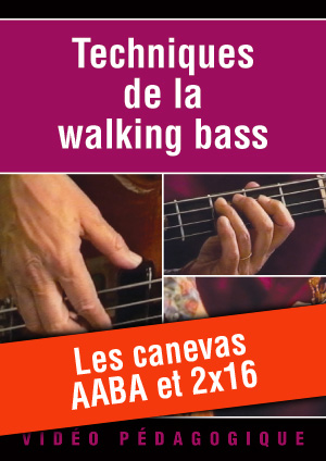 Cette vidéo, intégralement dédiée aux techniques de la walking bass, décortique la façon de jouer des walkin' sur les canevas AABA et 2x16. Durée : 8 minutes. Avec livret de partitions.