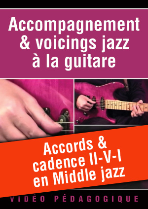 Cette vidéo, intégralement dédiée l'accompagnement jazz à la guitare, propose de découvrir les accords et la cadence II-V-I en middle jazz. Durée : 8 minutes. Avec livret de partitions.