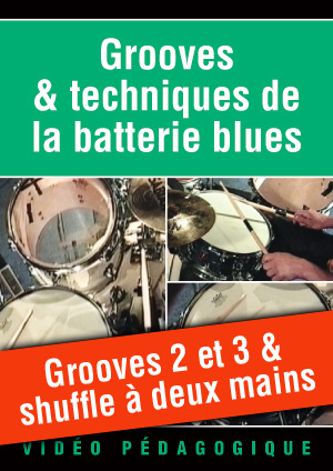Cette vidéo, dédiée intégralement aux grooves et techniques de la batterie blues, propose de découvrir et travailler le shuffle à deux mains ainsi que deux grooves dans l'esprit. Durée : 8 minutes.