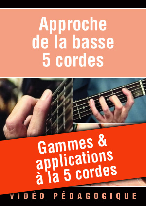 Cette longue vidéo, qui a pour vocation l'initiation à la basse 5 cordes, permet de découvrir et travailler les gammes sur la 5 cordes ainsi que leurs applications possibles. Durée : 26 minutes. Avec livret de partitions.