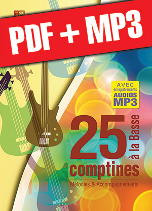 Cet ouvrage s’adresse à tous les bassistes qui souhaitent pouvoir jouer et chanter des comptines et autres chansons pour enfants. Que ce soit à la maison, en colonie de vacances, en centre aéré, en classe, ou ailleurs. Seul, en famille, ou entre amis. Accessibles aux bassistes de tous âges et tous niveaux, les 25 comptines pour basse que comporte ce recueil sont parmi les plus connues : à la claire fontaine, à la pêche aux moules, Maman les p’tits bateaux, Une souris verte, Nous n’irons plus au bois, Frère Jacques, Il était un petit navire, Il pleut il pleut bergère, J’ai du bon tabac, Meunier tu dors, Alouette, Pomme de reinette et pomme d’api, Le bon roi Dagobert, C’est la mère Michel... Pour chacune d’elles, vous trouverez en parallèle les parties de basse jouant aussi bien la mélodie que l’accompagnement, toutes deux en solfège et tablatures, ainsi que l’ensemble des paroles. Mais cet ouvrage n’aurait pas été complet sans les enregistrements qui l’accompagnent. Ainsi, vous trouverez sur ces derniers, et ce pour chaque comptine, trois pistes audios différentes. Celles-ci vous permettront d’entendre distinctement les deux parties (mélodie et accompagnement) séparées puis jouées ensemble, et vous donneront aussi l’occasion de jouer sur les playbacks de chacune d’elles, la partie manquante.