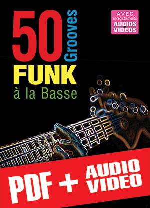 Cette méthode rassemble 50 grooves funk à destination de tous les bassistes, qui trouveront là matière à se divertir et travailler leur instrument de longues heures durant. Pour aborder sereinement ces 50 grooves de basse funk, un chapitre préliminaire est entièrement consacré aux techniques de jeu (aux doigts bien sûr, mais aussi en slap, avec palm mute, notes mortes, shake, double stops, pull-offs, hammers et autres slides...) ainsi qu’aux particularités rythmiques (doubles croches binaires et ternaires, quarts de soupir, staccatos...) du style. Les enregistrements vidéos (MP4) permettent de découvrir tous ces grooves joués “en situation”, à vitesse réelle, puis au ralenti. De leur côté, les enregistrements audios (MP3) offrent la possibilité de les interpréter sur des playbacks de longue durée (de 3 à 4 minutes chacun, soit plus de 6 heures de musique en tout !), et ce aussi bien à vitesse réelle que lente (deux enregistrements pour chaque groove). Vous pourrez ainsi vous exercer “à votre rythme” et dans les meilleures conditions possibles. Un ouvrage idéal pour jouer de vrais grooves complets à la manière des plus grands : James Brown, The Meters, Bootsy Collins, Parliament, The Commodores, Earth, Wind and Fire, Tower of Power, Maceo Parker, The Temptations...