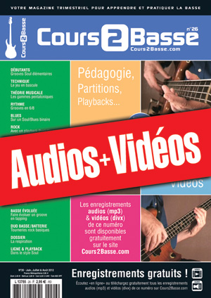 Une archive zippée contenant tous les enregistrements audios (mp3) et vidéos (divx) qui correspondent au magazine Cours 2 Basse n°26.