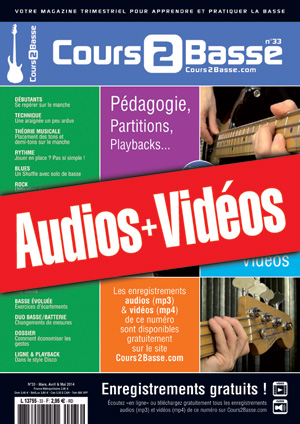 Une archive zippée contenant tous les enregistrements audios (mp3) et vidéos (mp4) qui correspondent au magazine Cours 2 Basse n°33.