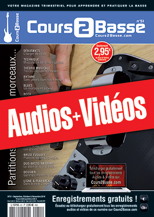 Une archive zippée contenant tous les enregistrements audios (mp3) et vidéos (mp4) gratuits qui correspondent au magazine Cours 2 Basse n°51.