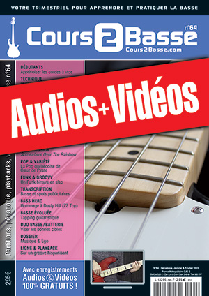 Une archive zippée contenant tous les enregistrements audios (mp3) et vidéos (mp4) gratuits qui correspondent au magazine Cours 2 Basse n°64.