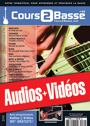 Une archive zippée contenant tous les enregistrements audios (mp3) et vidéos (mp4) gratuits qui correspondent au magazine Cours 2 Basse n°69.