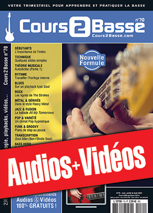 Une archive zippée contenant tous les enregistrements audios (mp3) et vidéos (mp4) gratuits qui correspondent au magazine Cours 2 Basse n°70.