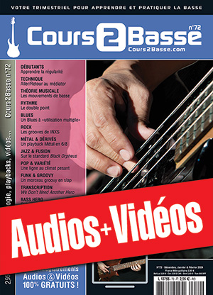 Une archive zippée contenant tous les enregistrements audios (mp3) et vidéos (mp4) gratuits qui correspondent au magazine Cours 2 Basse n°72.