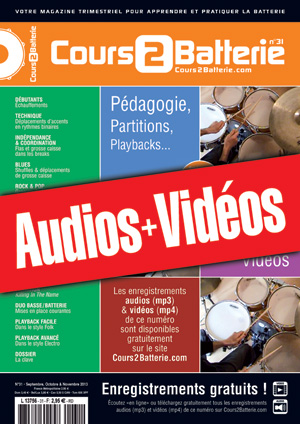 Une archive zippée contenant tous les enregistrements audios (mp3) et vidéos (mp4) qui correspondent au magazine Cours 2 Batterie n°31.