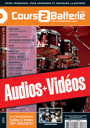 Une archive zippée contenant tous les enregistrements audios (mp3) et vidéos (mp4) gratuits qui correspondent au magazine Cours 2 Batterie n°63.