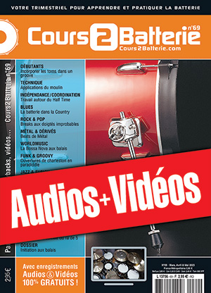 Une archive zippée contenant tous les enregistrements audios (mp3) et vidéos (mp4) gratuits qui correspondent au magazine Cours 2 Batterie n°69.