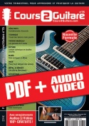 Le Cours 2 Guitare n°75 en version optimisée pour Android. DEBUTANTS : Enchaînements d’accords. TECHNIQUE : Travail des liaisons main gauche. THEORIE : Les gammes de 6 notes. RYTHME : Lecture rythmique en doubles croches. BLUES : Faire swinguer un Blues. ROCK : Plans Rock utilisant des liaisons. METAL & DERIVES : Les riffs de Rammstein. ACOUSTIQUE : De la Worldmusic acoustique. FUNK & GROOVY : Tourneries Soul de 8 mesures. JAZZ & FUSION : Autour du mode mixolydien. TRANSCRIPTION : Master Blaster (Stevie Wonder). GUITAR HERO : George Benson. SOLO & PLAYBACK : Solo Funk/Fusion.