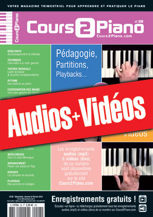 Une archive zippée contenant tous les enregistrements audios (mp3) et vidéos (mp4) qui correspondent au magazine Cours 2 Piano n°28.