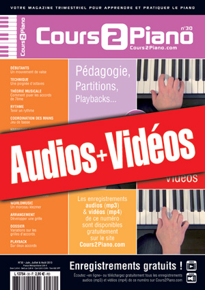 Une archive zippée contenant tous les enregistrements audios (mp3) et vidéos (mp4) qui correspondent au magazine Cours 2 Piano n°30.