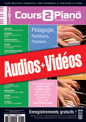 Une archive zippée contenant tous les enregistrements audios (mp3) et vidéos (mp4) gratuits qui correspondent au magazine Cours 2 Piano n°36.