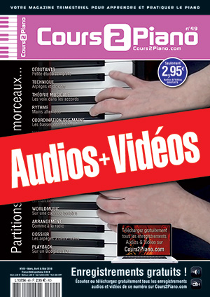 Une archive zippée contenant tous les enregistrements audios (mp3) et vidéos (mp4) gratuits qui correspondent au magazine Cours 2 Piano n°49.