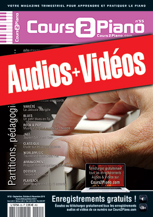 Une archive zippée contenant tous les enregistrements audios (mp3) et vidéos (mp4) gratuits qui correspondent au magazine Cours 2 Piano n°55.