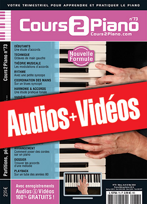 Une archive zippée contenant tous les enregistrements audios (mp3) et vidéos (mp4) gratuits qui correspondent au magazine Cours 2 Piano n°73.