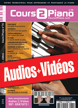 Une archive zippée contenant tous les enregistrements audios (mp3) et vidéos (mp4) gratuits qui correspondent au magazine Cours 2 Piano n°74.