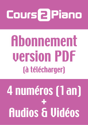 Pour 9 euros, vous pourrez télécharger les 4 prochains numéros (1 an) de Cours 2 Piano avec les enregistrements correspondants, en audio et en vidéo. Soit près de 25% d’économie !