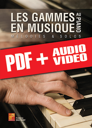 Cet ouvrage a pour objectif de vous faire pratiquer les gammes au piano dans un cadre purement musical, c’est-à-dire en situation, sur des plans d’accompagnement, des mélodies et des solos. L’idée n’est donc pas ici de les travailler techniquement mais avant tout musicalement... et ce pour votre plus grand plaisir ! Le présent ouvrage se propose ainsi de vous faire “jouer en situation” les 7 principales gammes que sont la gamme majeure, la gamme pentatonique majeure, la gamme mineure naturelle, la gamme pentatonique mineure, la gamme blues, la gamme mineure mélodique, et enfin la gamme mineure harmonique. Pour chacune d’elles, vous découvrirez non seulement la structure et les notes qui les composent dans les douze tonalités... mais aussi et surtout de multiples applications musicales (accompagnement, mélodie ou solo) à jouer sur playback. Enfin, sur les enregistrements audios mp3 et vidéos mp4 joints à la méthode, vous trouverez, et ce pour chaque morceau, la démonstration en vidéo, ainsi qu’un playback spécifique (à deux tempi différents) qui vous permettra d’apprendre à jouer bien “en place” mais aussi de vous faire plaisir... comme si vous étiez au sein d’un groupe, parmi d’autres musiciens.