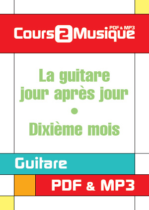 "La guitare, jour après jour" est une méthode complète en 12 volumes distincts et évolutifs. Chaque volume comprend 30 leçons quotidiennes (1 mois de travail) et permet l'étude parallèle et complémentaire de la technique, de la théorie, de l'accompagnement et enfin de l'improvisation, chaque sujet étant traité en alternance. Dixième mois.