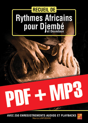 Ce livre n’est pas une méthode didactique pour apprendre à jouer du Djembé et autres Doundouns, mais un recueil de rythmes traditionnels d’Afrique de l’Ouest... la transcription de ce qui, en réalité, se transmet oralement de père en fils. Il s’adresse ainsi prioritairement à ceux qui souhaitent apprendre à jouer ces fameux rythmes traditionnels africains. Mais aussi à tous ceux qui connaissent déjà les techniques de base et veulent approfondir leur connaissance des rythmes à travers une lecture simplifiée. Pour bien comprendre comment “s’emboîtent” les différentes percussions, tous les rythmes sont écrits ici à la manière d’un “score” complet. Les partitions comprennent ainsi non seulement les parties pour Djembé, qui peuvent varier de un à trois tambours maximum, mais aussi celles correspondant aux trois Doundouns (Kenkeni, Sangban et Doundounba). Ce recueil est également accompagné de près de 250 enregistrements audios mp3. Ces derniers présentent à la fois les rythmes complets, les parties isolées de chaque instrument, mais aussi le playback correspondant à chaque instrument de chacun des rythmes. Soit plus de 3 heures de musique en tout... pour faciliter votre compréhension des rythmes traditionnels africains et pouvoir vous exprimer “en situation”.