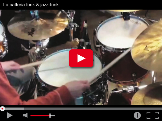 Come sempre iniziamo dal video che ti mostra tramite il suono e l'immagine questo groove funk di batteria. Sarà l'occasione di osservare i gesti e le diteggiature utilizzate per suonare questo ritmo in modo da poterlo riprodurre in seguito.