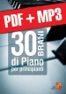 Questa raccolta, destinata ai pianisti principianti, racchiude trenta brani facili da suonare che permettono di acquisire rapidamente un’esperienza seria al pianoforte pur divertendosi. Interpretando veri piccoli brani ad hoc, si fanno progressi suonando. E proprio questo è il credo di questo libro! L'altro aspetto essenziale di questa raccolta risiede nella progressività dei brani presentati in modo da rassicurare i principianti proponendo loro un lavoro fluido e coerente. Questa raccolta sarà anche l’occasione di scoprire dei brani di stili molto diversi, spaziando dalla musica d’epoca a quella più attuale: canzoni, pezzi di jazz, di ragtime, di blues, di rock, opere inedite... c’è di tutto! Inoltre le registrazioni permettono di progredire e divertirsi. Ogni pezzo è in effetti presentato due volte: la prima con il pianoforte per la dimostrazione, la seconda senza la parte di piano per darvi la possibilità di suonare sulla base musicale come se foste in gruppo, con altri musicisti.